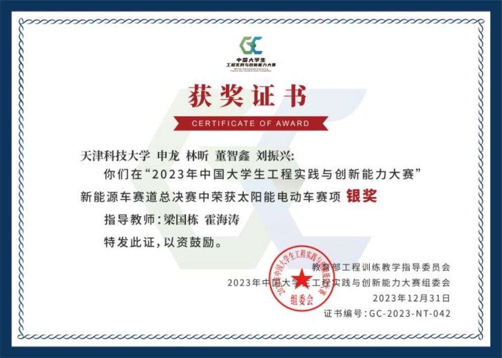 2023年中国大学生工程实践与创新能力大赛总决赛于2023年11月24日至2023年12月10日,分别在西北工业大学、中南大学、吉林大学、北京航空航天大学、深圳大学和山东大学举行。我校共5支队伍分别入围到本次总决赛的五个赛项,我校学子披荆斩棘、勇创佳绩,共获得2项国家级银奖和3项国家级铜奖的好成绩,为天津赛区进入总决赛项目最多、获奖学生最多的高校。