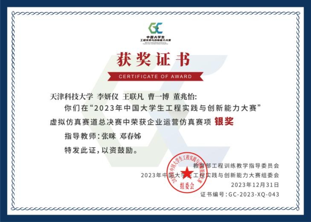附:2023年中国大学生工程实践与创新能力大赛获奖证书